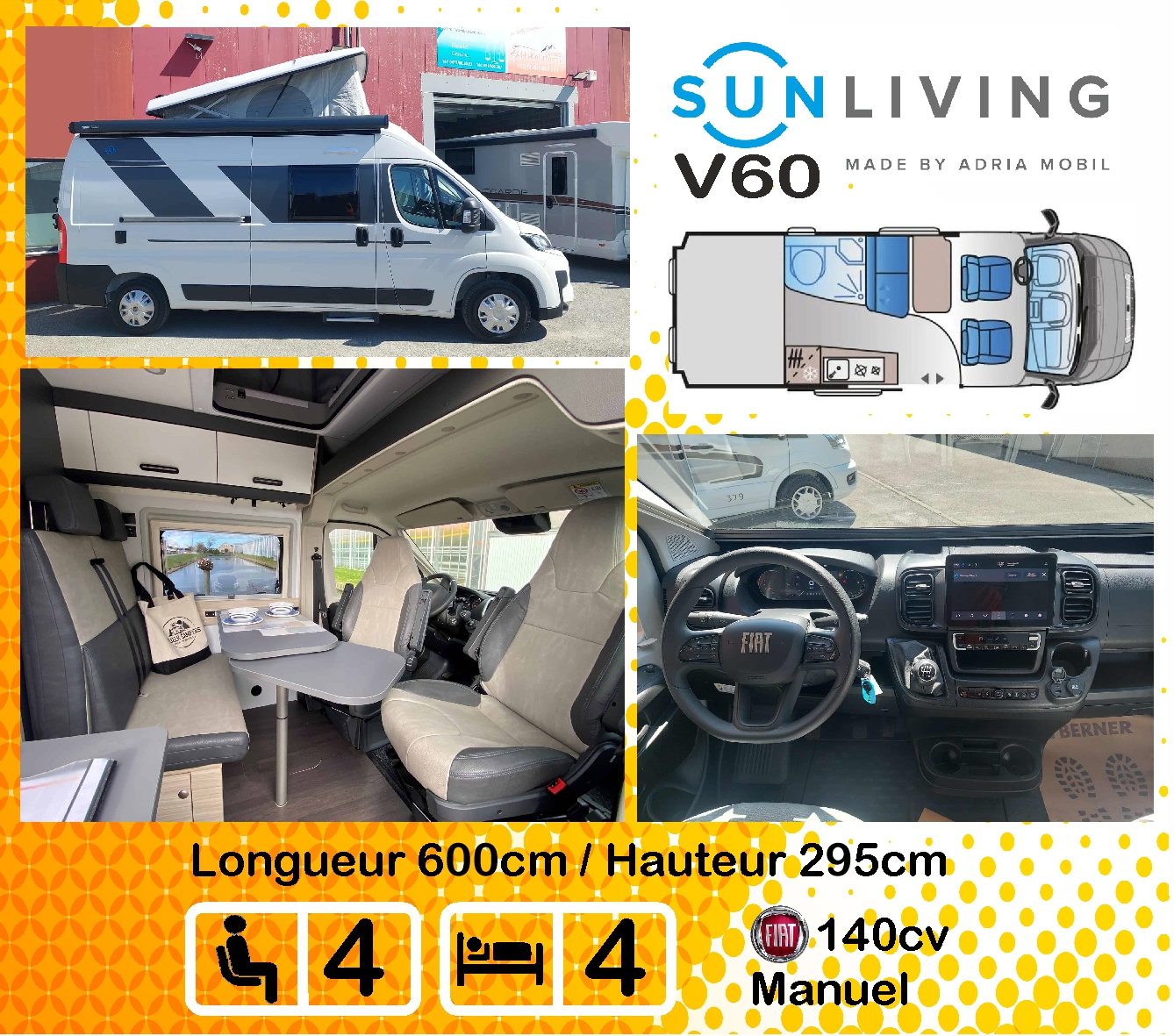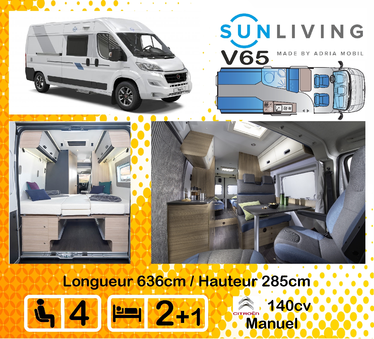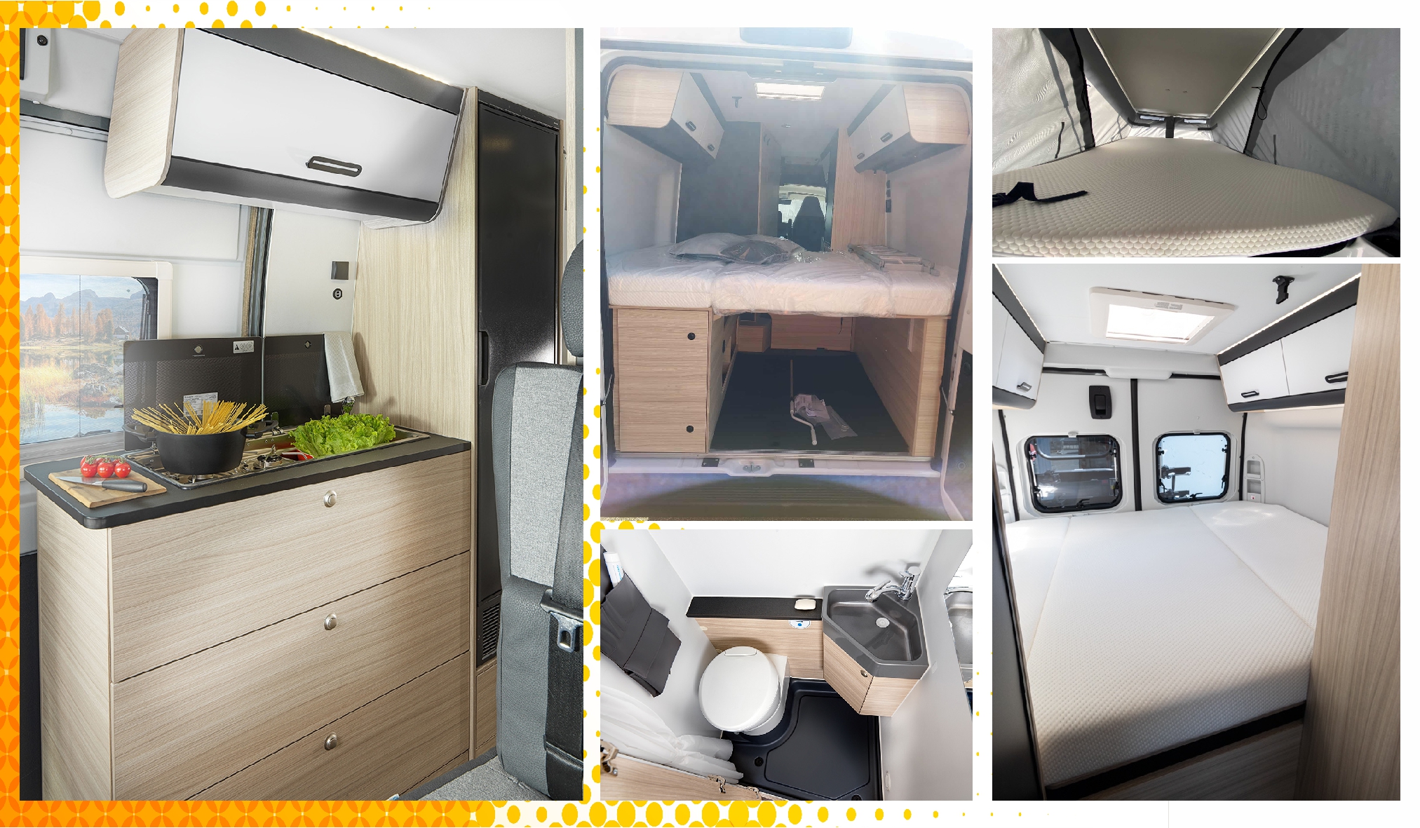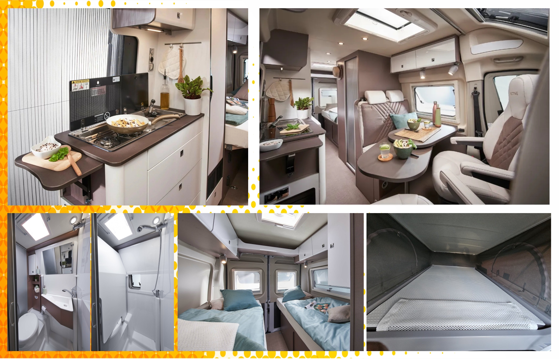 Vaisselle, literie complète, TV DVD TNT, GPS, guides des aires de repos, guide France Passion, meubles de jardin, assistance Europe, gaz et produit WC, porte-vélos, store, nettoyage extérieur et lessive de drap de lit inclus,